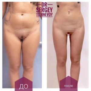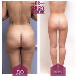 - ноги. Операция помогает избавиться от нависающих жировых отложений над коленями, в области икр, скорректировать пропорции и объем.