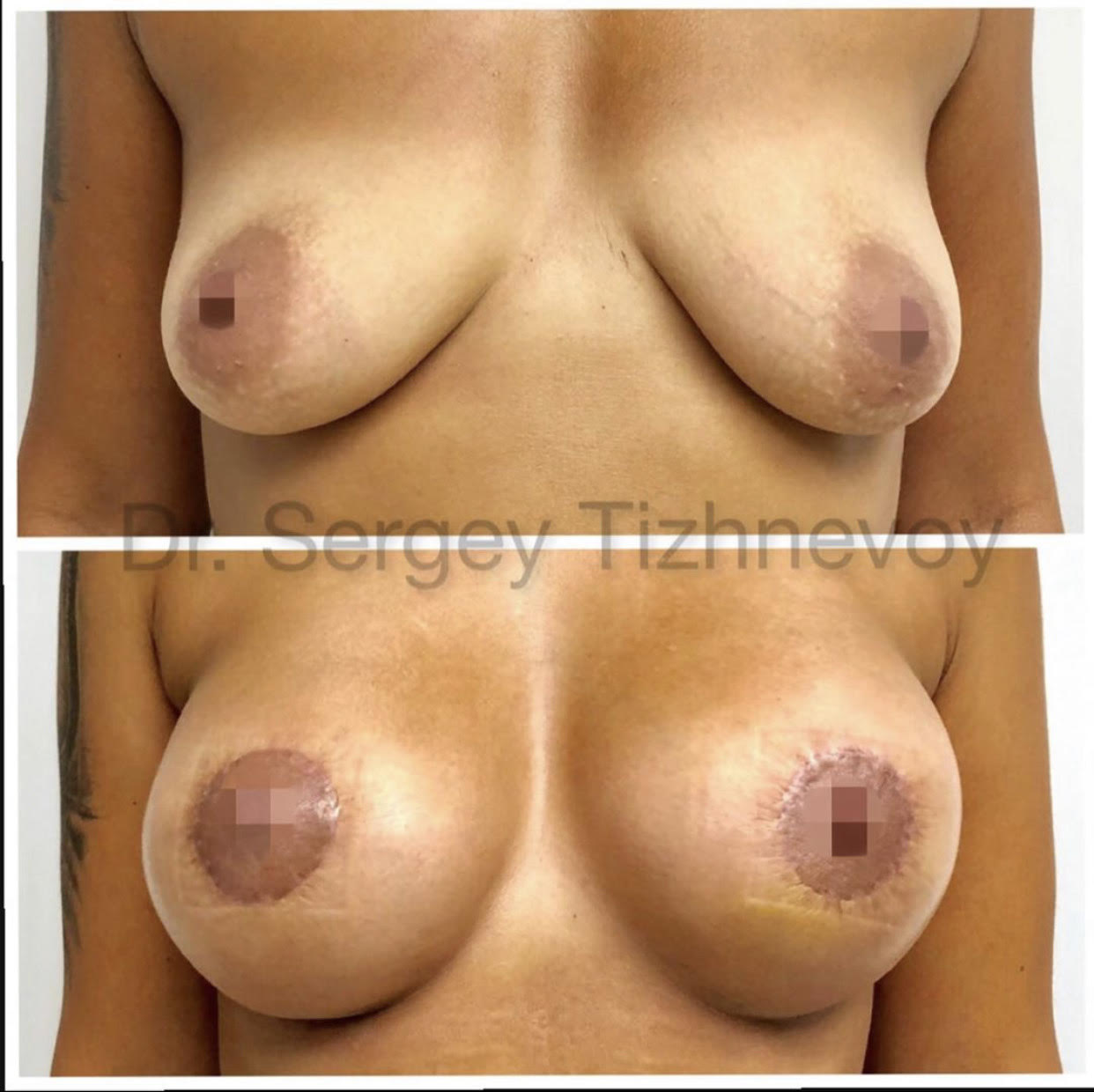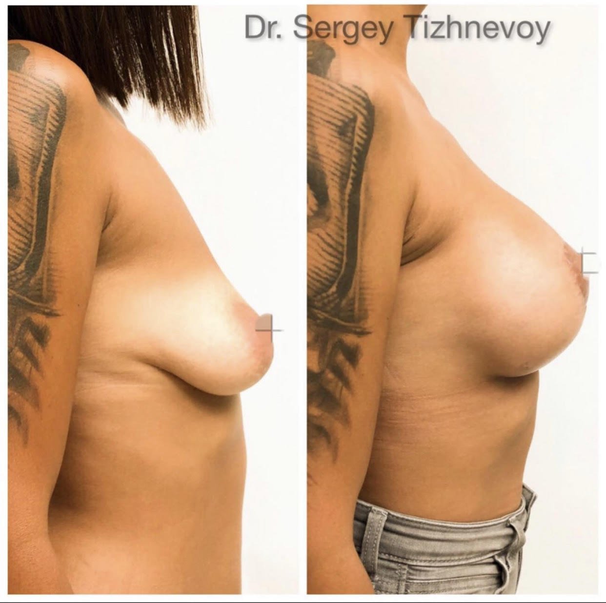 Выполняется подтяжка без имплантов. Однако, если в ходе вмешательства получается значительная потеря объема груди, пластический хирург может рекомендовать установку протеза. Импланты позволяют восполнить полноту, придают упругость и способствуют улучшению формы.